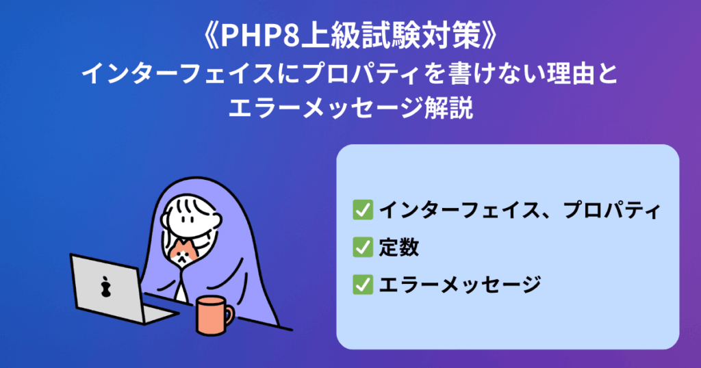 《PHP8上級試験対策》インターフェイスにプロパティを書けない理由とエラーメッセージ解説