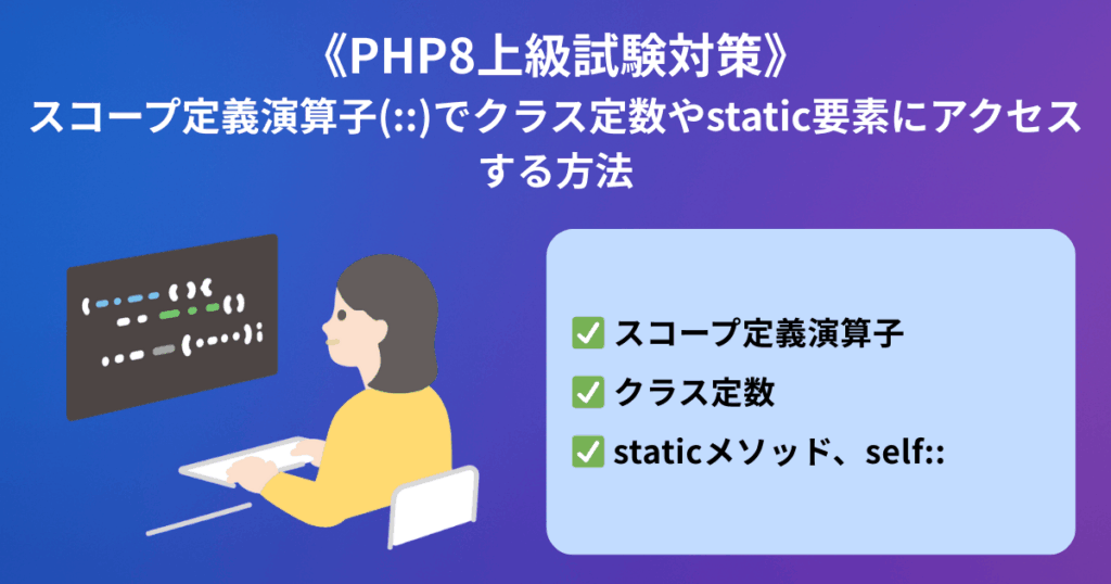 《PHP8上級試験対策》スコープ定義演算子(::)でクラス定数やstatic要素にアクセスする方法