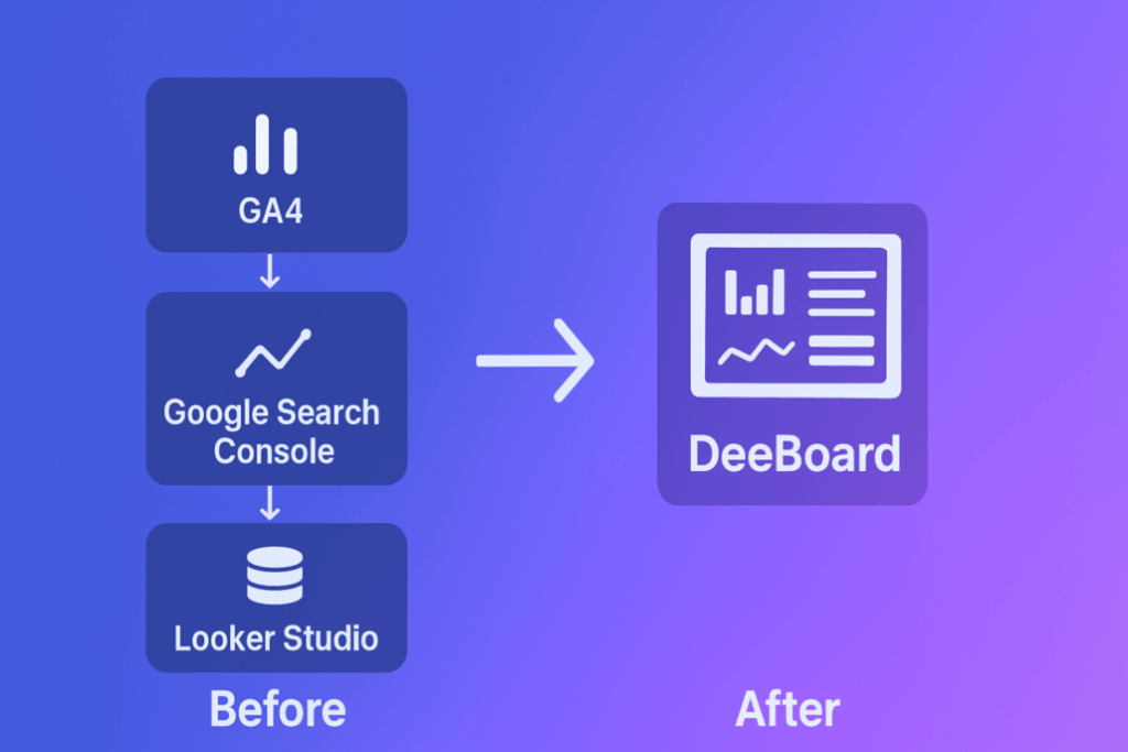 そう考えて、ついに買い切り3万円のアクセス解析レポート 「DeeBoard(ディーボード)」 を導入しました。GA4・Looker Studio・Google Search Console の設定だけで、すぐに高度なダッシュボードが完成し、日常の分析作業が一気にラクになりました。