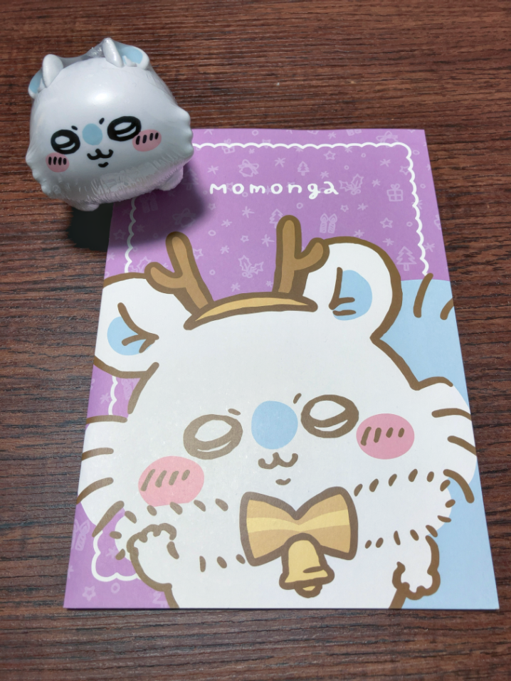 先日、会社の同僚に買ってきてもらった 「ちいかわ モモンガ貯金箱」 もあるので、2つセットで渡したら喜んでくれそう。