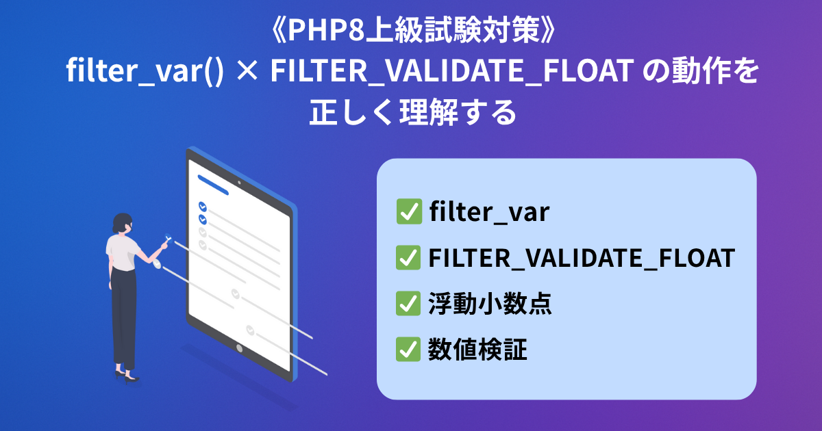 中でも FILTER_VALIDATE_FLOAT は「小数点を含む数値を検証する」と誤解されやすいフィルタですが、実際にはもっと柔軟に「浮動小数点として解釈可能かどうか」をチェックします。