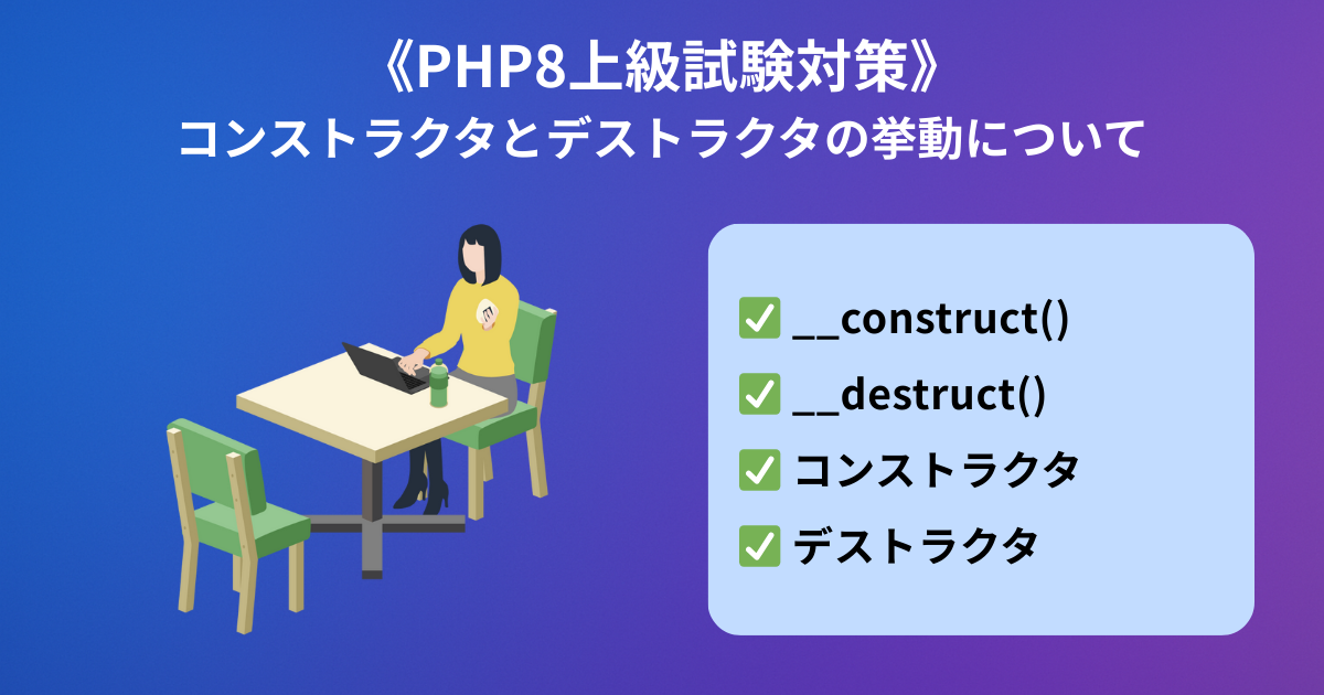 PHPでは、クラスのインスタンス生成・破棄のタイミングで自動的に呼ばれる特殊メソッドとして、コンストラクタ __construct()
