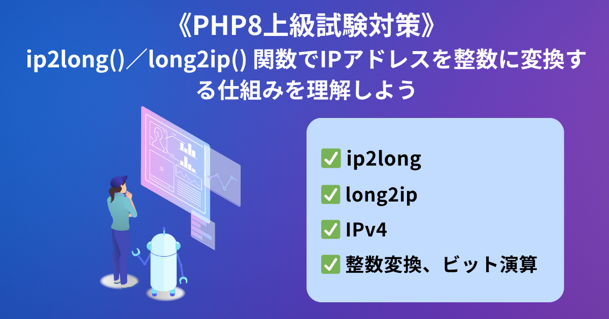 PHPでは、IPアドレスをそのまま文字列で扱うだけでなく、「整数値」として計算・比較することもできます。