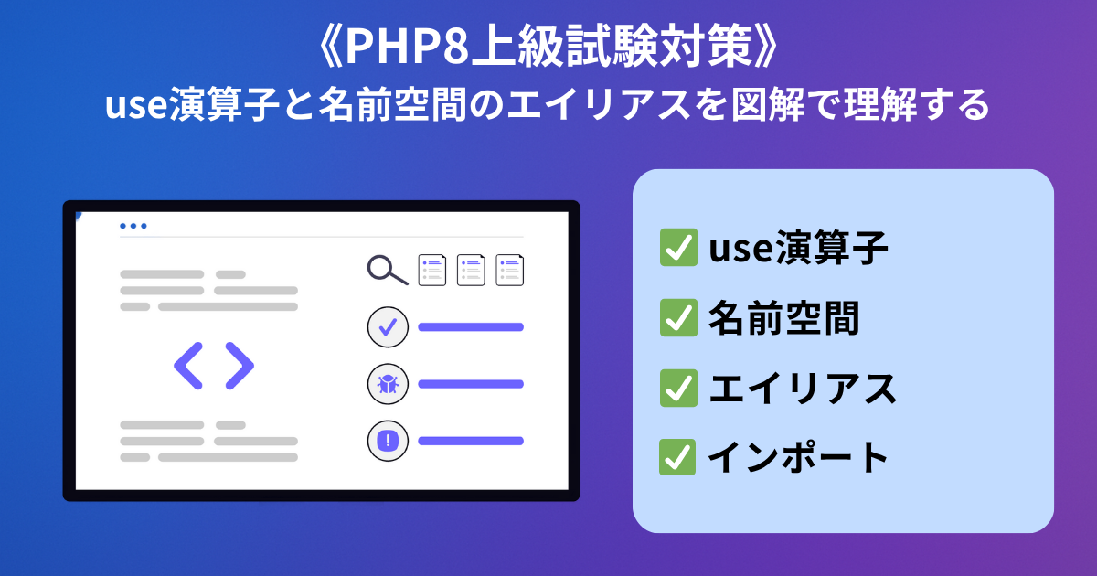 この記事では、PHP8上級試験でも頻出の use