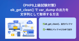 PHPの出力は通常ブラウザに直接送信されますが、ob_start() を使うと 一時的にバッファにためて加工してから出力 することができます。上級試験でもよく出題されるテーマです。