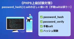 password_hash() | ソルト付きで安全なハッシュを生成(bcryptなど) |