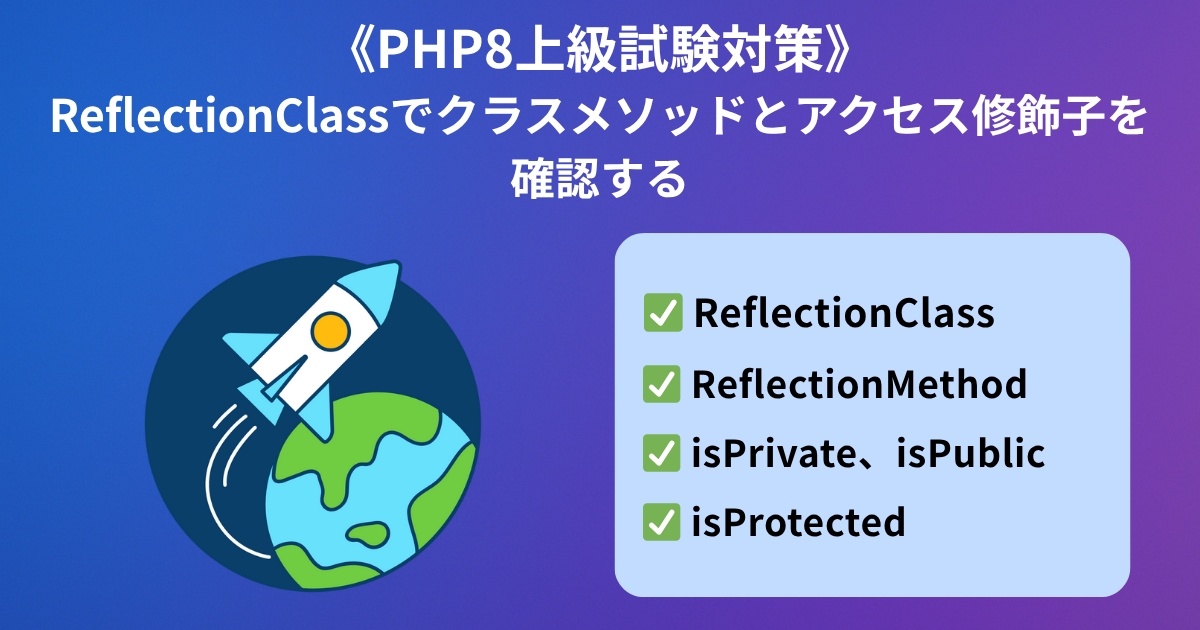 PHPでクラスの情報を動的に取得したいときに便利なのが ReflectionClass です。特にクラスのメソッド一覧やアクセス修飾子を調べたい場合、getMethods()