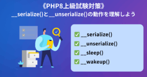 そして、保存した文字列を再びオブジェクトに戻す処理をアンシリアライズ(unserialize) と呼びます。