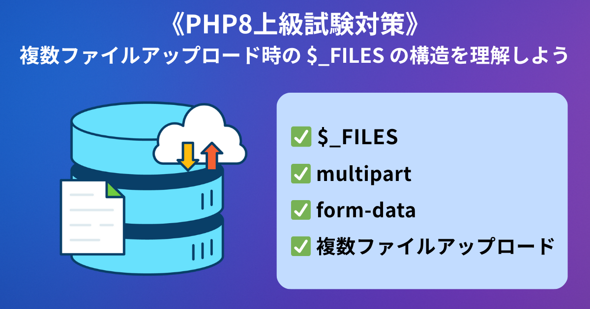 この内容はPHP8上級試験の 「ファイルアップロード」セクション でよく問われる定番ポイントです。