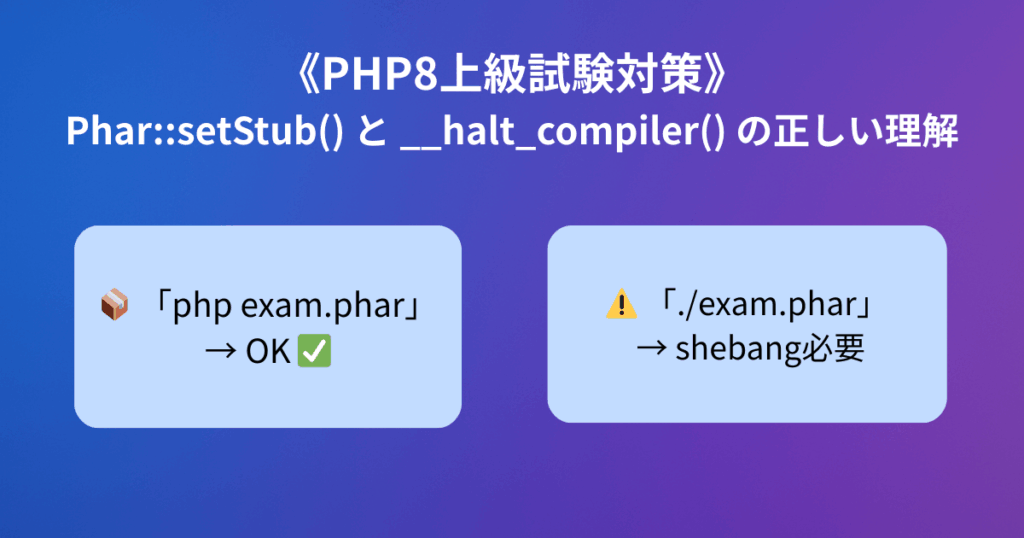 《PHP8上級試験対策》Phar::setStub() と __halt_compiler() の正しい理解